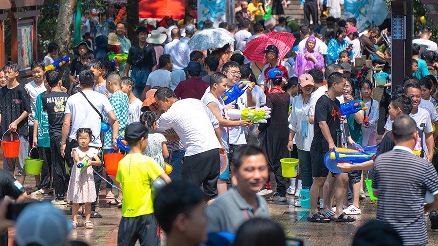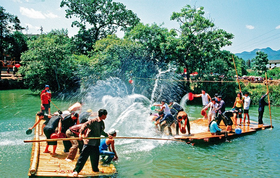 景區(qū)內(nèi)布依風(fēng)情濃郁,尤其是農(nóng)歷三月三潑水節(jié),賽竹筏、送荷包,大人祭山祭水,小孩潑水嬉戲,完全一幅世外桃園景象。