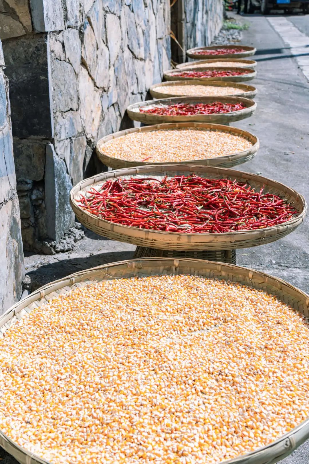 這是發(fā)生在大補懂村的曬秋之景,村落地處萬峰林自然保護區(qū)腹地,內(nèi)部生態(tài)環(huán)境良好,依山而建的彝家村落有序分布,各種農(nóng)作物在陽光下煥發(fā)出絢麗的光彩,黃色、紅色、綠色的樹林交錯于山谷間。
