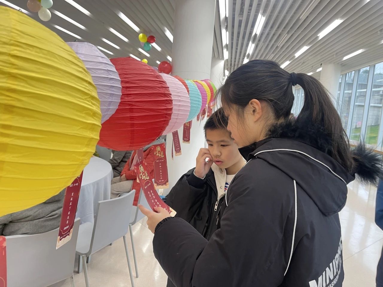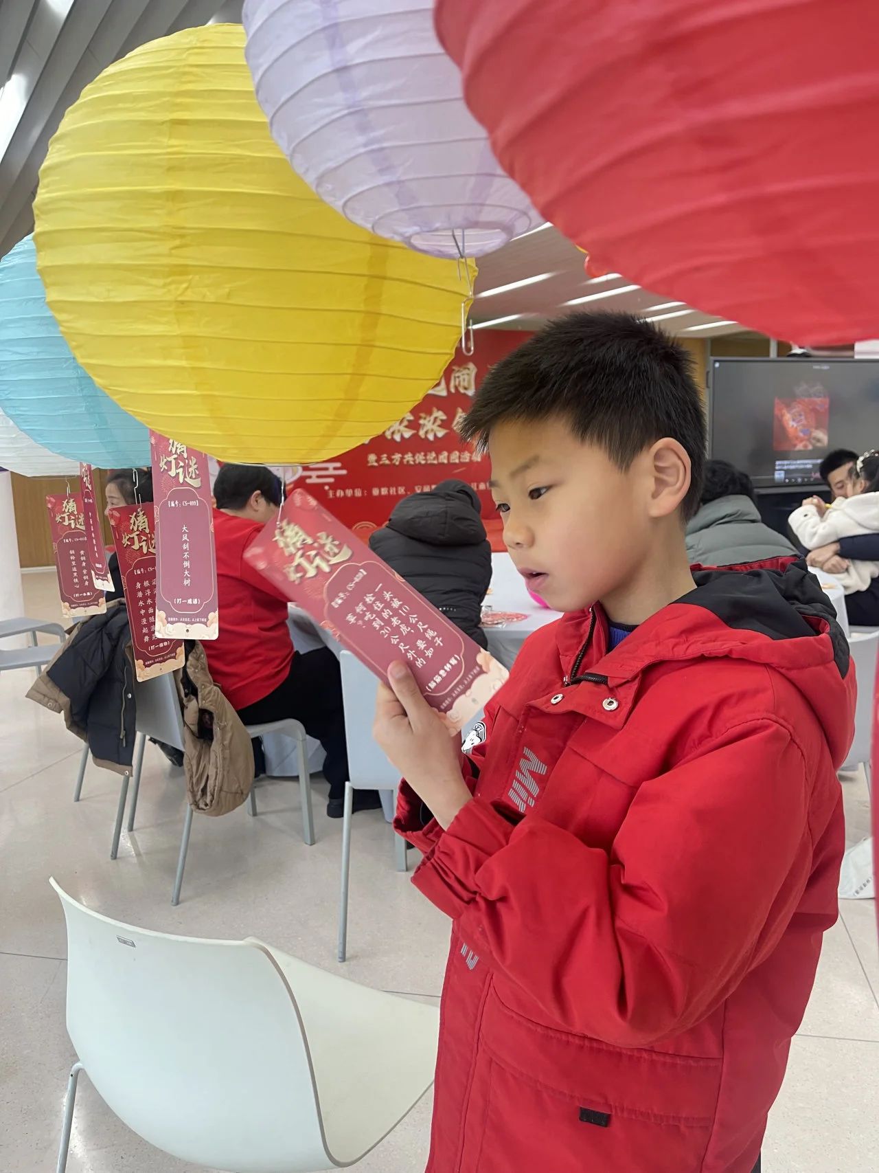 活動(dòng)現(xiàn)場,居民們看著一張張懸掛的謎語,時(shí)不時(shí)手里比劃著,互相探討,共同體驗(yàn)猜燈謎帶來的樂趣。內(nèi)容不僅有歇后語、成語、還有腦筋急轉(zhuǎn)彎大家在猜燈謎的過程中你一言我一語,活動(dòng)現(xiàn)場氣氛異常熱烈。
