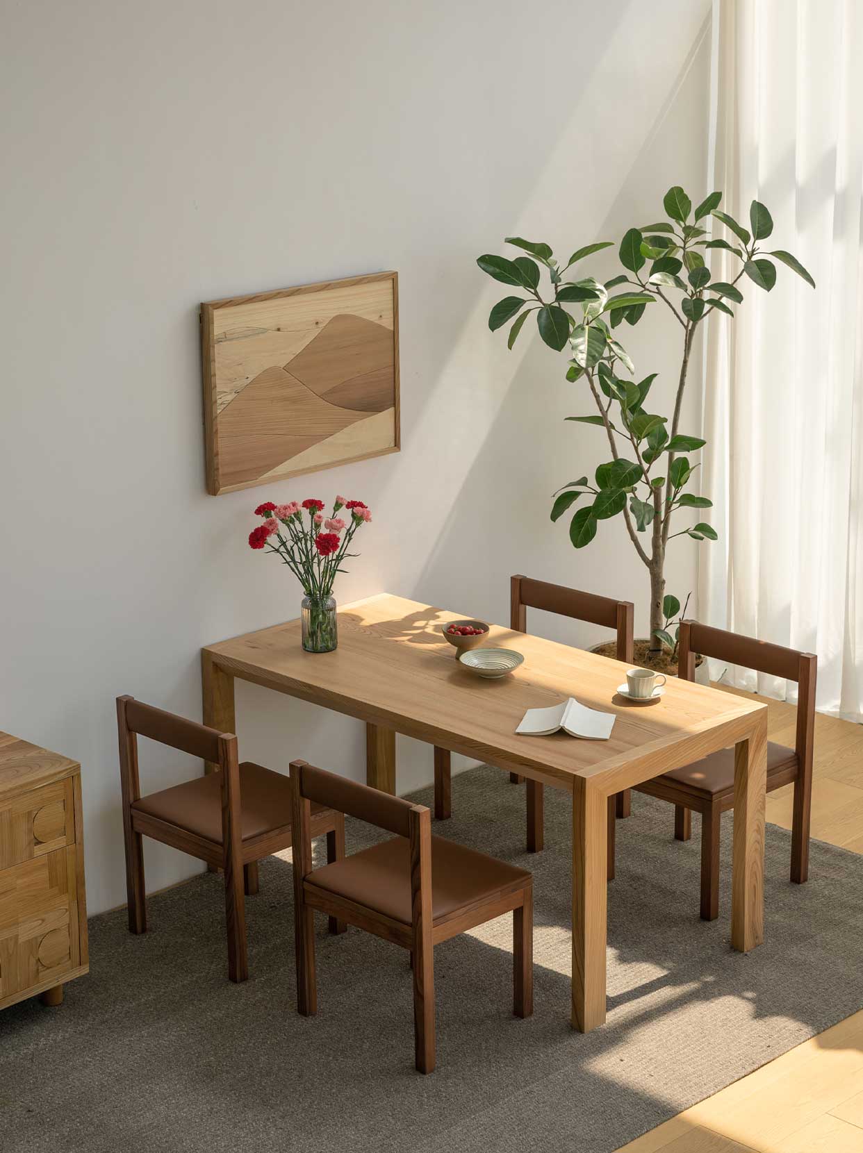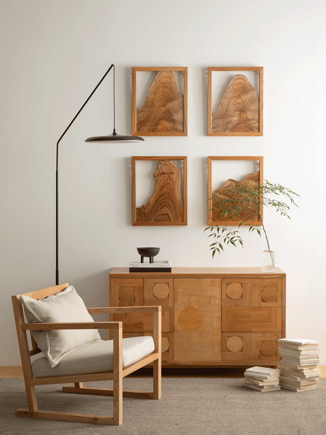 旗下品牌“大角木創(chuàng)”,大角即45°最美角度。在人的視覺、聽覺、觸覺等感知中,視覺是感受空間藝術(shù)最直接的方式,而大角木創(chuàng)希望做的是以最美角度構(gòu)造一種能滿足人的生活起居需求,又符合居住的人居空間環(huán)境,讓家具藝術(shù)為現(xiàn)代人生活帶來便利的同時(shí)還帶來更多視覺上的美感和觸覺上的舒適。大角木創(chuàng)傳承華智匠心精神和堅(jiān)持自然之美的品牌基因,引進(jìn)日本櫸木、七葉、檜木、杉木等幾十個(gè)品種為原材料,將自然界的材質(zhì)運(yùn)用于空間的裝飾中,為喜愛木材之人保留它們?cè)瓉淼哪樱谫x予它們新的生命。